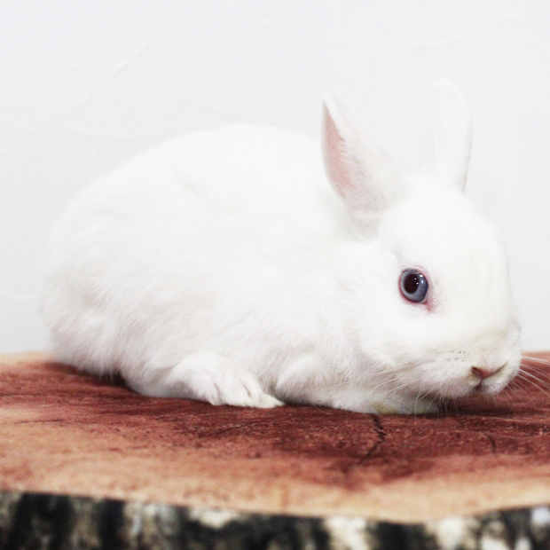 あおい 誕生日 2019/12/18 カラー ブルーアイドホワイト 体重 1,500g 引退したパパウサギ『すもも』と、ママウサギ『ラテ』のベビーになります。ご覧の通り、青いお目々に白い被毛が美しいブルーアイドホワイトと呼ばれる希少カラーの男の子になります。 |